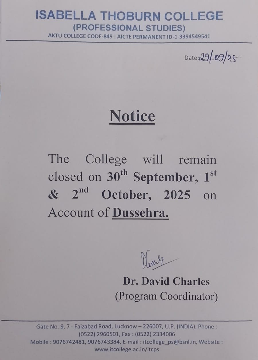 Isabella Thoburn College (Professional Studies), Lucknow, fosters the process of cohesion and nurtures a bond of solidarity among all involved. It champions the uninhibited exchange of ideas, cultivates a robust ecosystem of support, and promotes a vibrant ambiance of collective learning and collaboration among students, faculty, and staff. This elevates the educational journey, setting it on a pedestal of unparalleled excellence in Management and Technology. This esteemed institute is renowned for offering, AICTE-approved programs, MBA, BBA and B.Tech. in Artificial Intelligence and Data Science, Computer Science, Computer Science and Information Technology and Bioinformatics, affiliated to Dr. A.P.J Abdul Kalam Technical University, Lucknow.