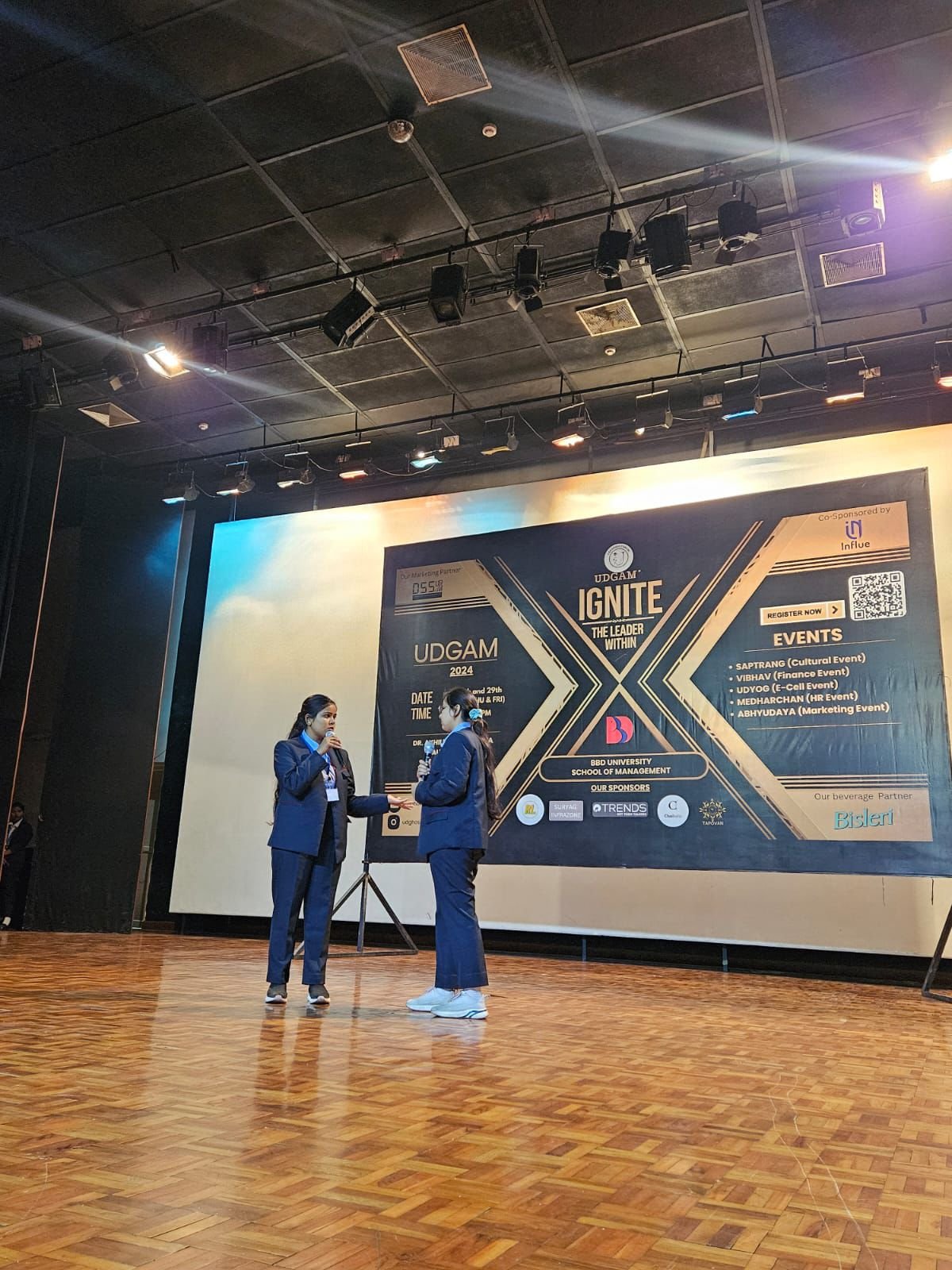 There were a number of competitions organized by Babu Banarsi Das University, Lucknow out of which our students had participated in two competitions. One was “SAMASYA MANTHAN” which was situation based (the students had to solve the problem of organization as an HR manager on the spot given by event organiser) and the other was “HR WORD FLOW CHALLENGE” in this completion the students had to explain the meaning of the word given to them on the spot in stipulated time. The students who won first prize in both the competition are Khushi Shukla and Akansha Mishra from MBA first year.