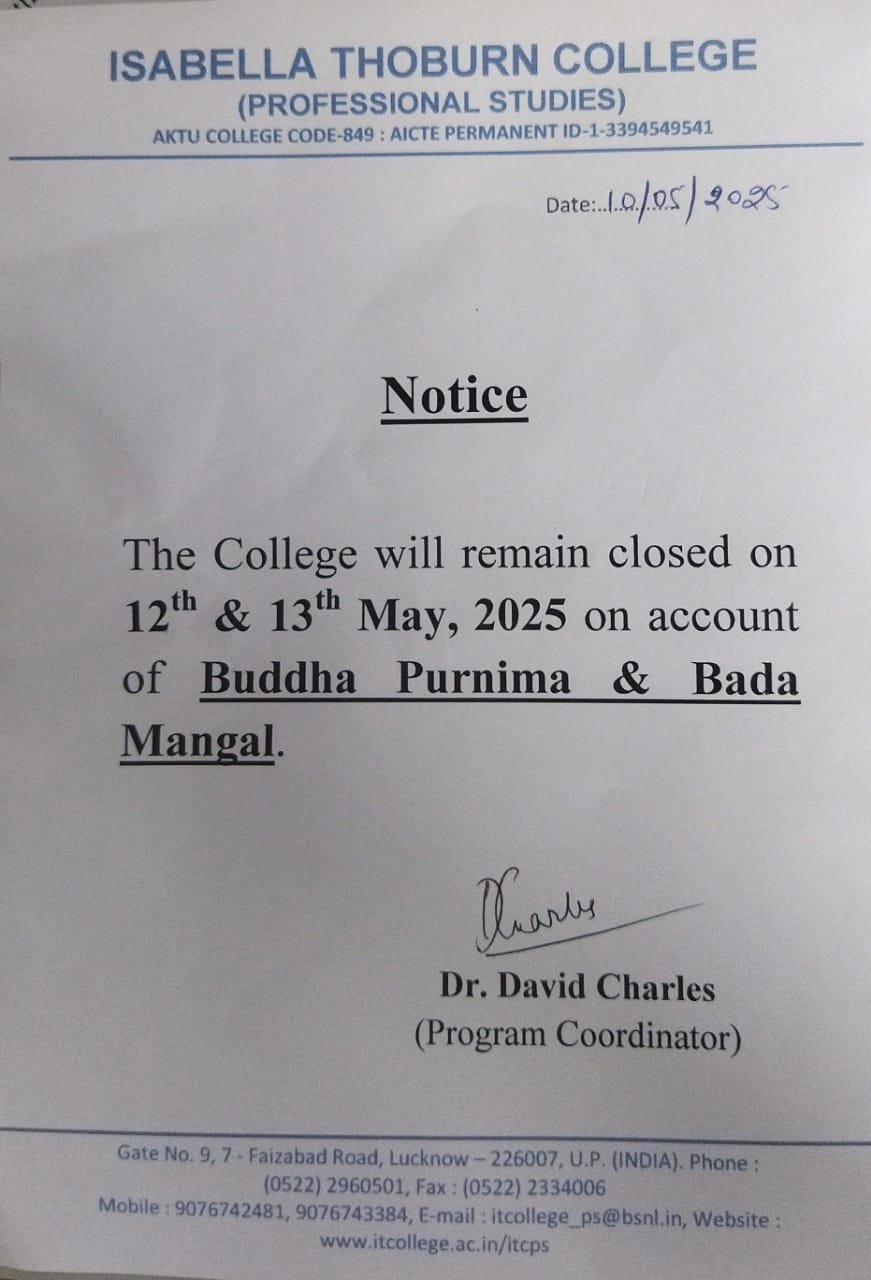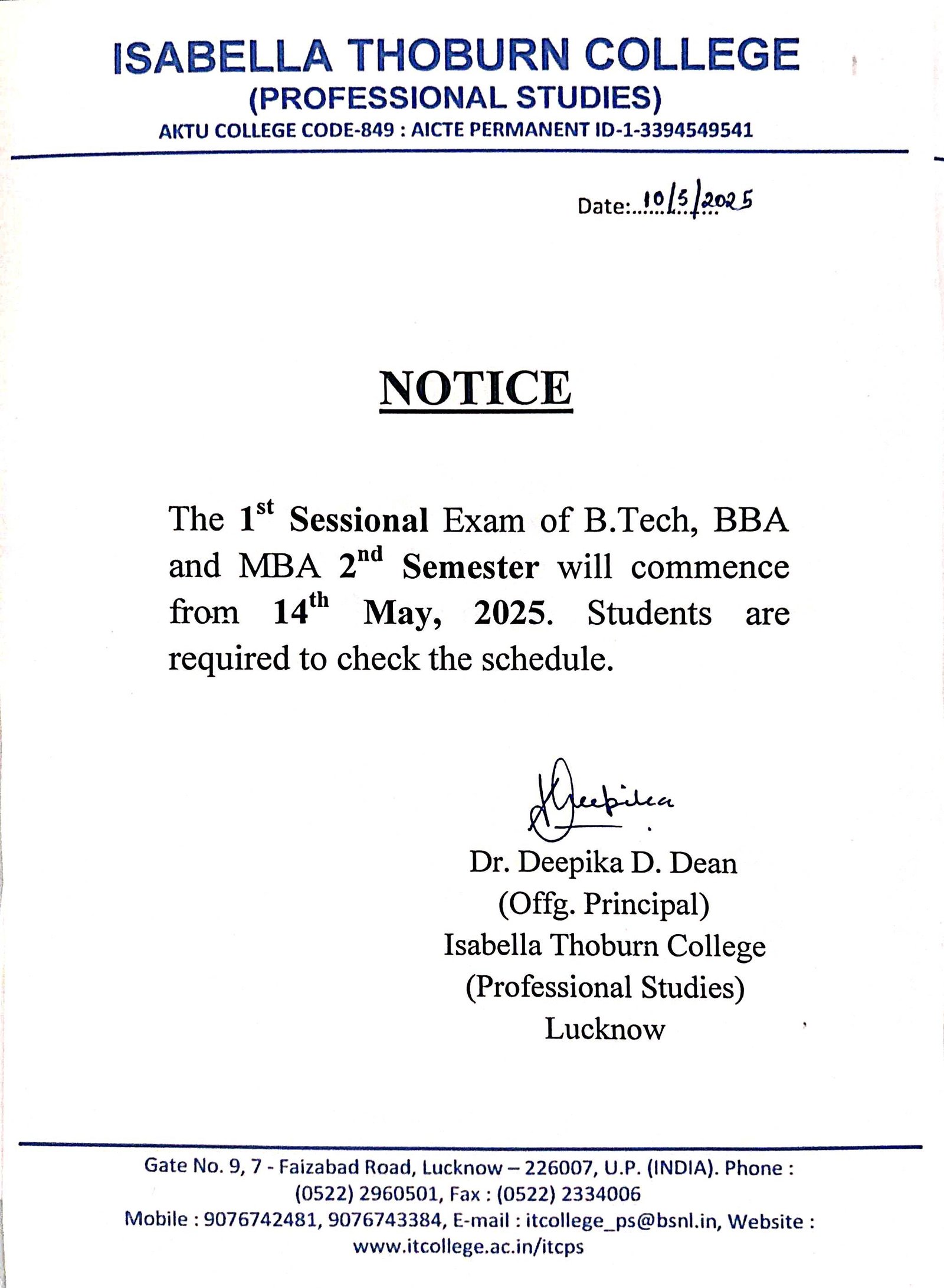 Isabella Thoburn College (Professional Studies), Lucknow, fosters the process of cohesion and nurtures a bond of solidarity among all involved. It champions the uninhibited exchange of ideas, cultivates a robust ecosystem of support, and promotes a vibrant ambiance of collective learning and collaboration among students, faculty, and staff. This elevates the educational journey, setting it on a pedestal of unparalleled excellence in Management and Technology. This esteemed institute is renowned for offering, AICTE-approved programs, MBA, BBA and B.Tech. in Artificial Intelligence and Data Science, Computer Science, Computer Science and Information Technology and Bioinformatics, affiliated to Dr. A.P.J Abdul Kalam Technical University, Lucknow.