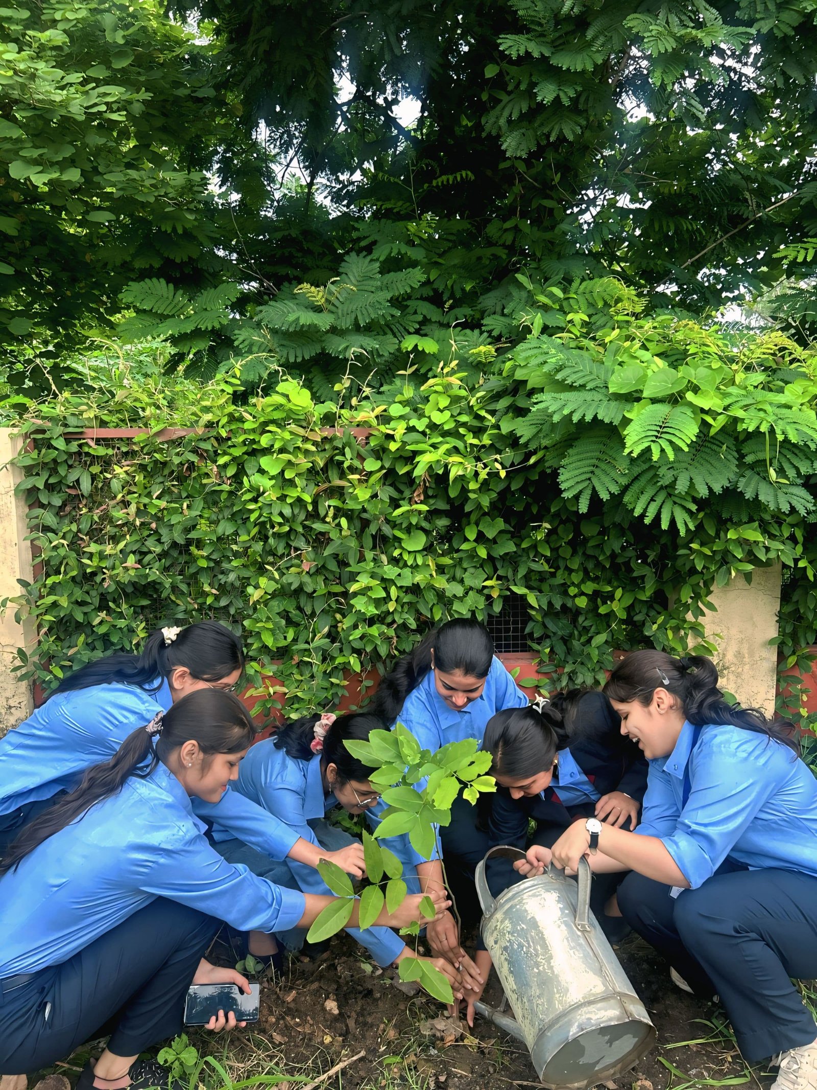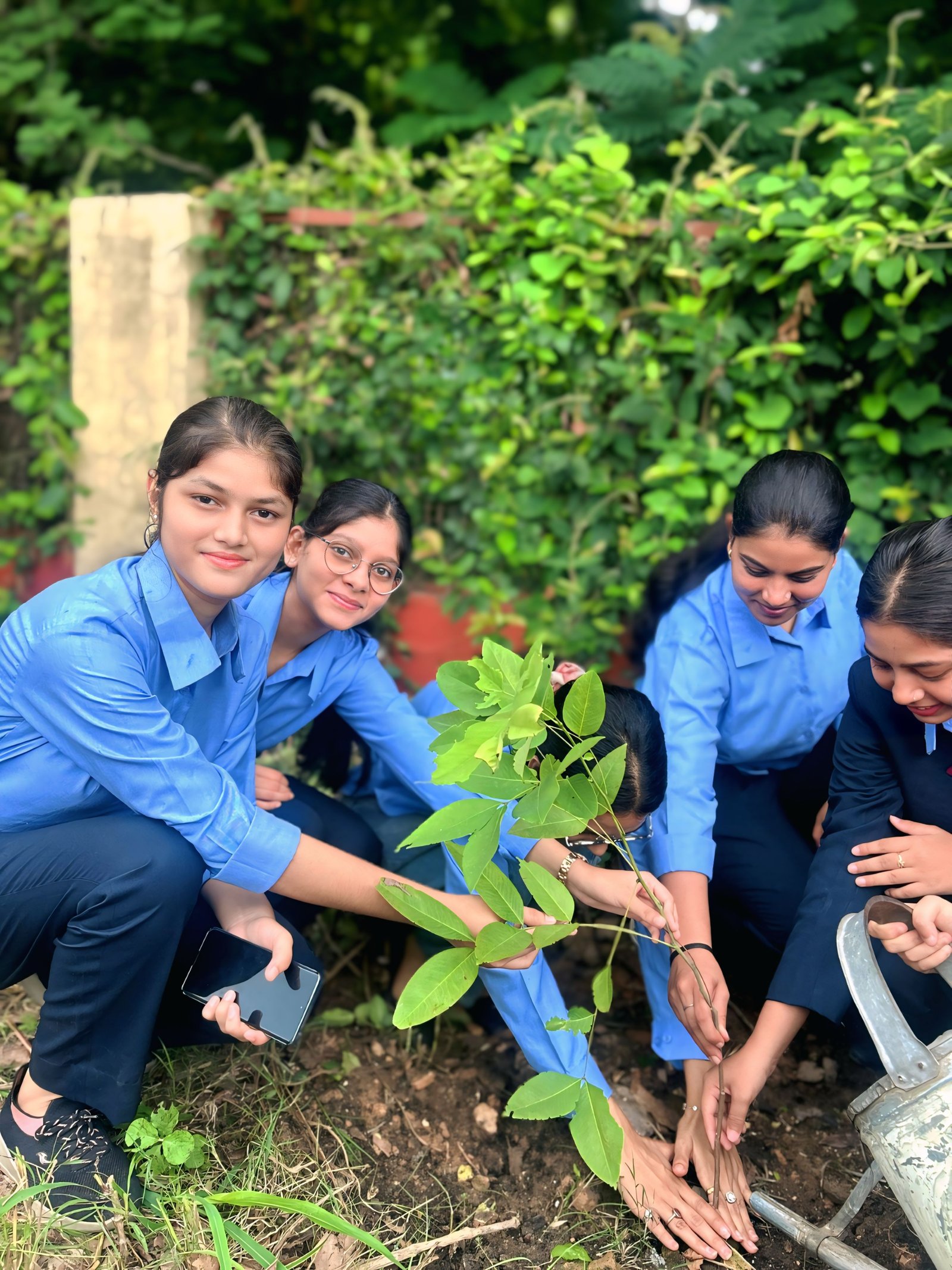 gathered with saplings in hand and smiles on their faces, focused on trees like Ashok,