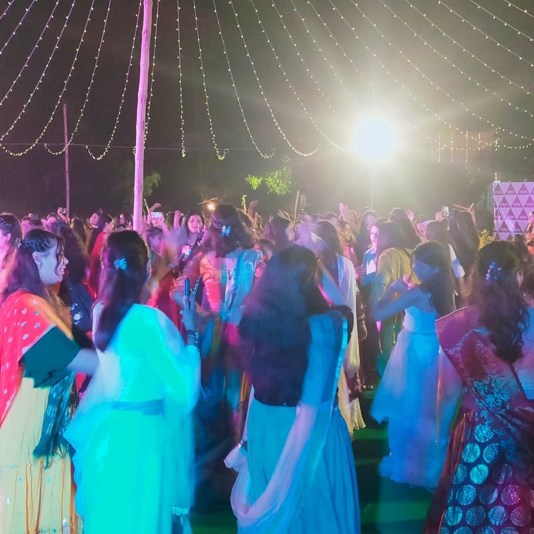The evening kicked off with traditional Dandiya performances, where students dressed in vibrant attire enthusiastically participated, creating a lively and festive atmosphere. The college campus resonated with the sounds of upbeat music and laughter, as students and participants danced with joy, embracing the cultural essence of India. The night was a perfect blend of fashion, fun, and festive spirit, providing students with an unforgettable experience. The event not only welcomed the new batch of students with open arms but also fostered a sense of unity and celebration among all attendees, making it a memorable occasion for the college community.