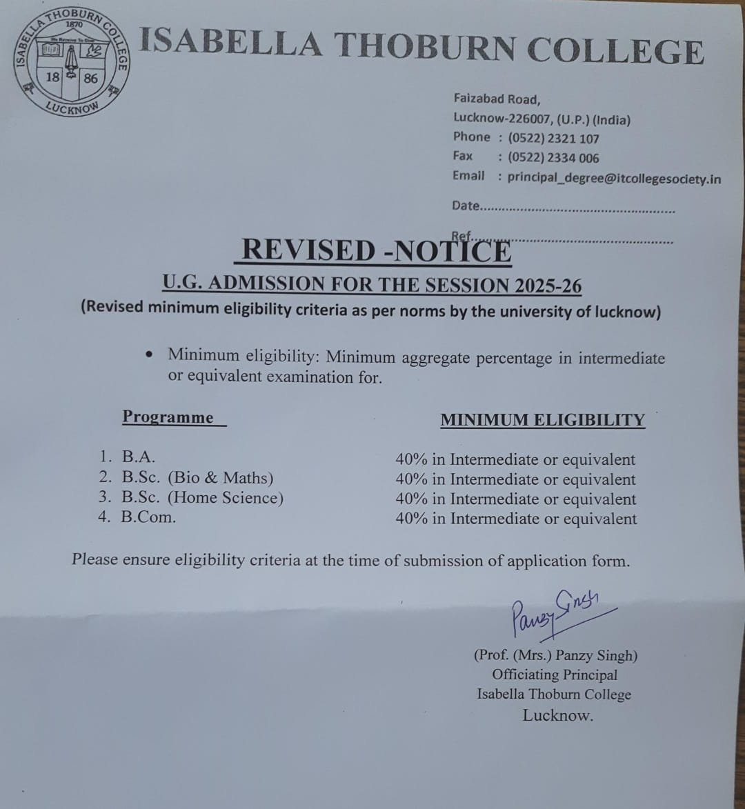 Isabella Thoburn College is run by the Isabella Thoburn Society of the Methodist Church in India and is an Associate College of the University of Lucknow.