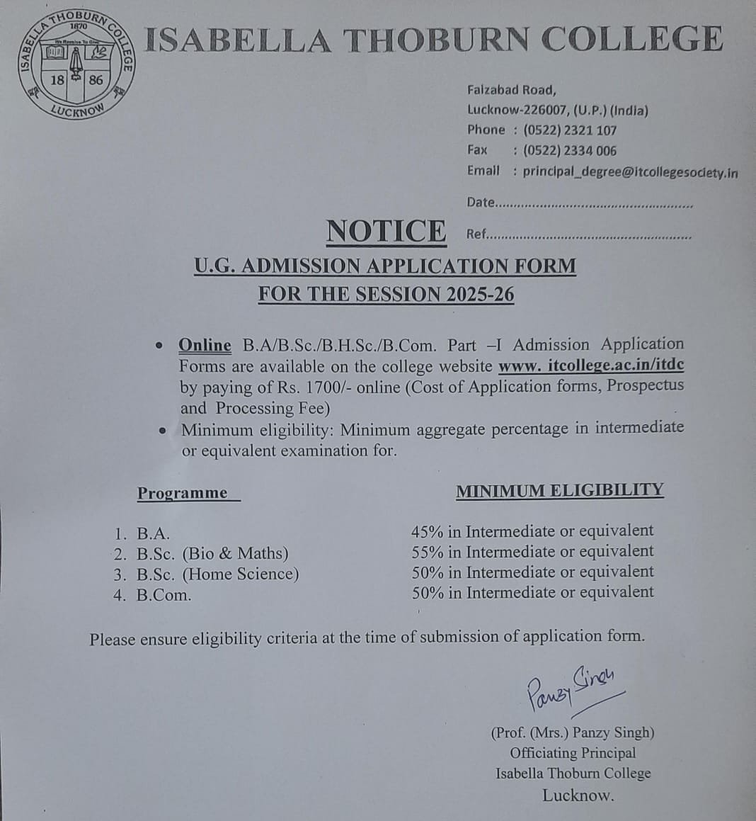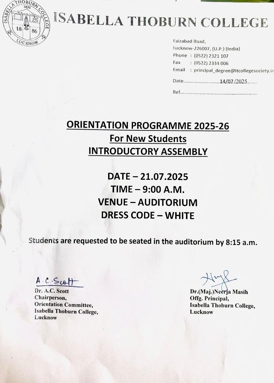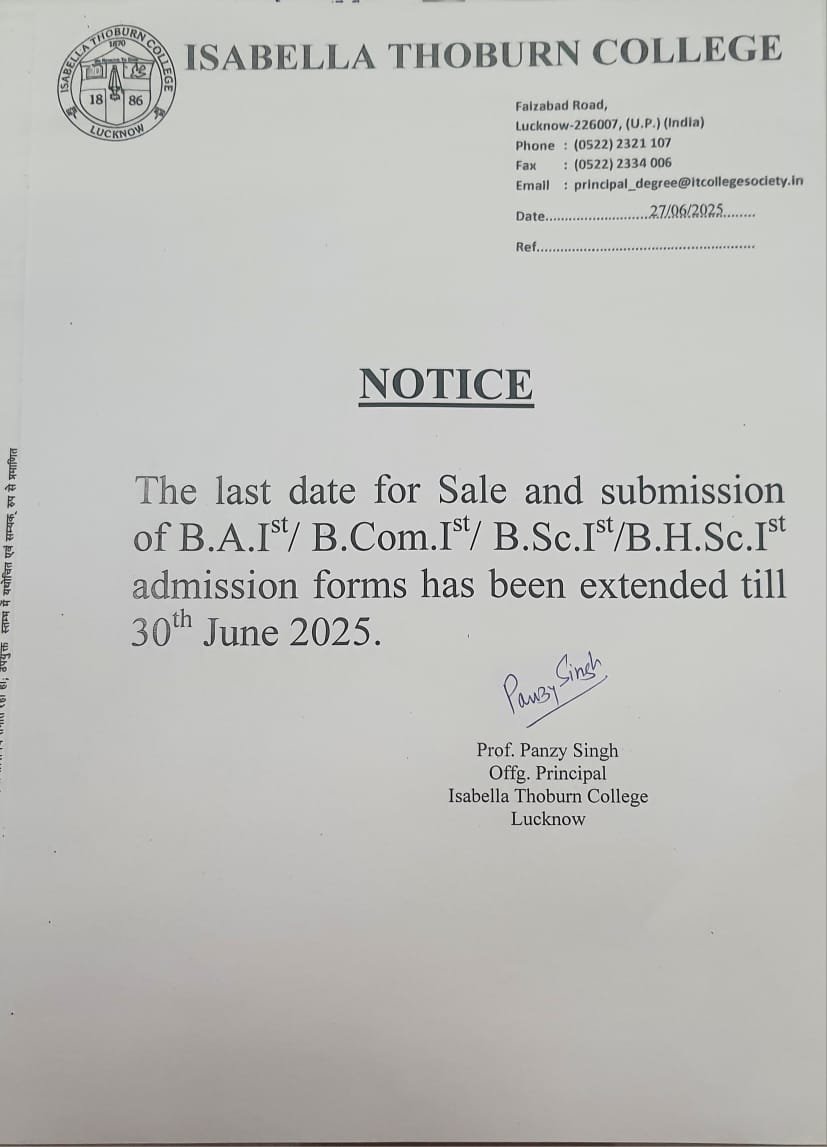 Isabella Thoburn College is run by the Isabella Thoburn Society of the Methodist Church in India and is an Associate College of the University of Lucknow. It was started as a small school on 18th April 1870 by Miss Thoburn, an American Missionary of the Methodist Church who I quote "No people can rise higher as a people than the point to which they educate their women " Her vision was to educate and empower Indian Women for leadership. The school become a College in 1886 and since the last 128 years generations of missionaries , academicians, administrators and students who have passed through the portals of this great institution have enriched society and the nation. It is our constant effort to provide a conducive atmosphere and environment not only for academic excellence but also for the development of a high moral and spiritual character. We have a highly qualified and capable Faculty who not only teach, but also counsel and monitor. The programmes and activities are incorporated in campus life in a way so as to help students to be academically qualified, morally upright and socially responsible . Providing a Christian atmosphere and Christian service to society is our aim. We wish not only to educate but to enlighten and empower the young women who enter our portals with expectations and enthusiasm.